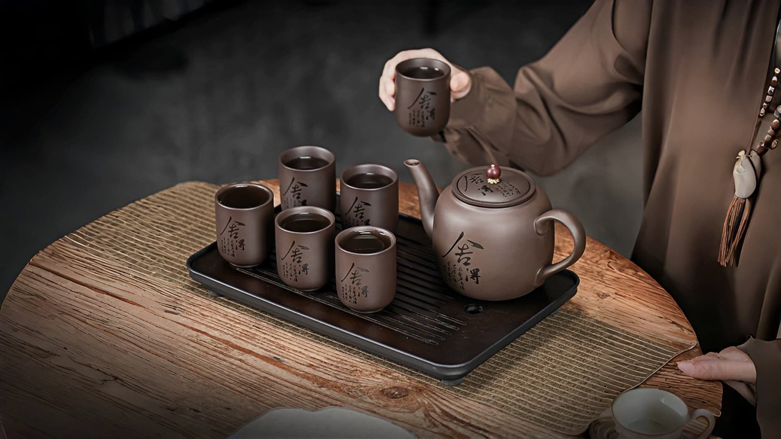 "Impeccably packaged and crafted! The unboxing felt luxurious—each piece nestled securely in custom foam, with the dark clay teapot and eight cups exuding elegance. The built-in filter ensures smooth pours, and the curved handle fits naturally in my grip. I gifted this set to a tea-loving friend, and the pristine presentation (plus the sturdy box) made it feel like a high-end purchase. The clay’s porous nature enhances the tea’s aroma over time. A thoughtful set for collectors and gifting."