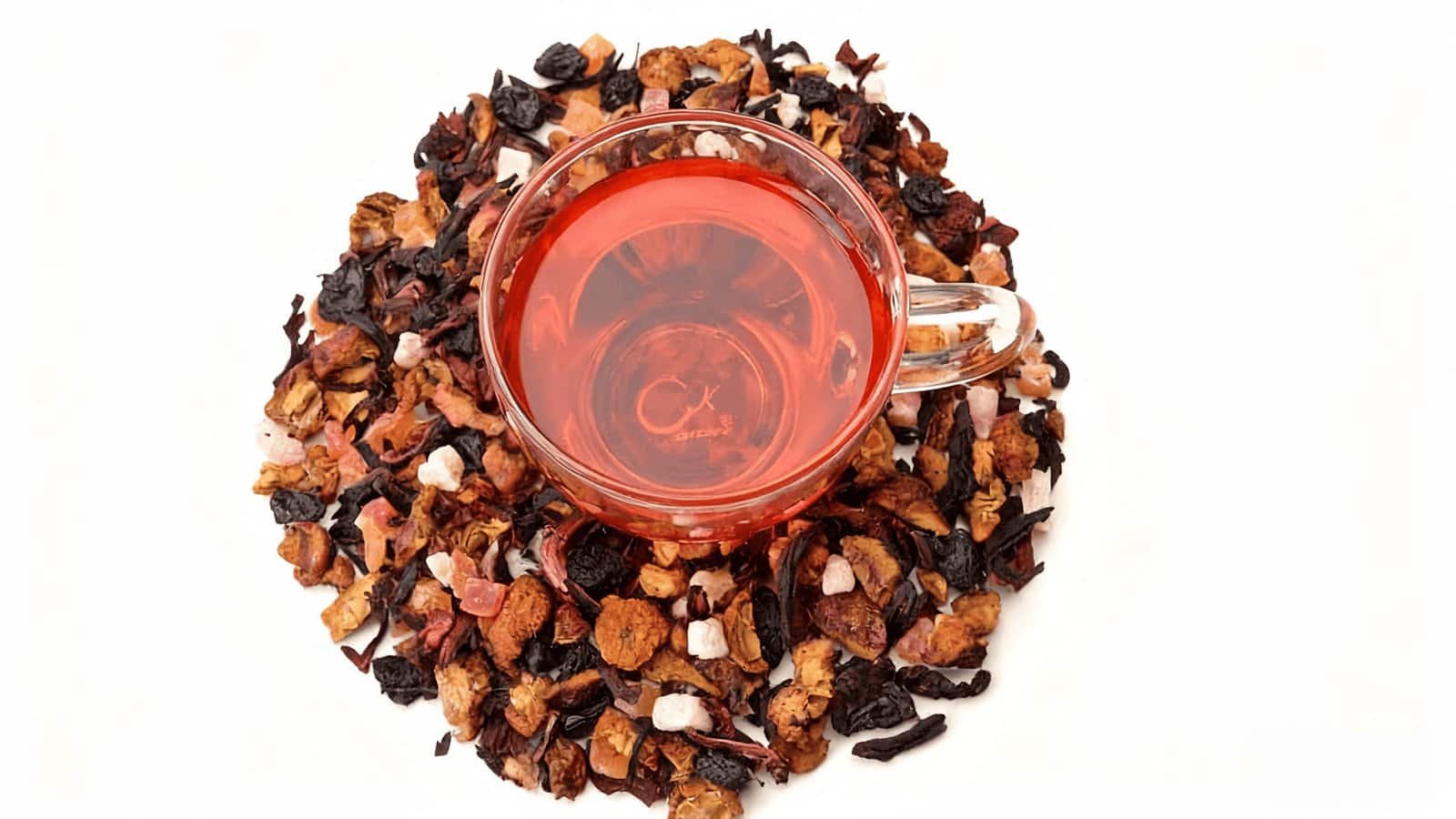 - Composizione: Hibiscus petals, apple slices, citrus fruits, and berries
